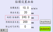9.根據(jù)貼膜位置的前后偏移量在貼膜設(shè)置畫面中調(diào)整向前/后偏移參數(shù)(圖4);如貼膜位置左右偏移,且機械調(diào)節(jié)底模兩端的微分調(diào)節(jié)頭(圖5);